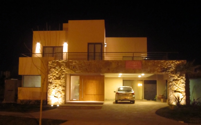 Hall de ingreso, living comedor (espacio doble altura), cocina y lavandería, sala de máquinas, dormitorio Master en suite. Cochera para dos vehículos.
