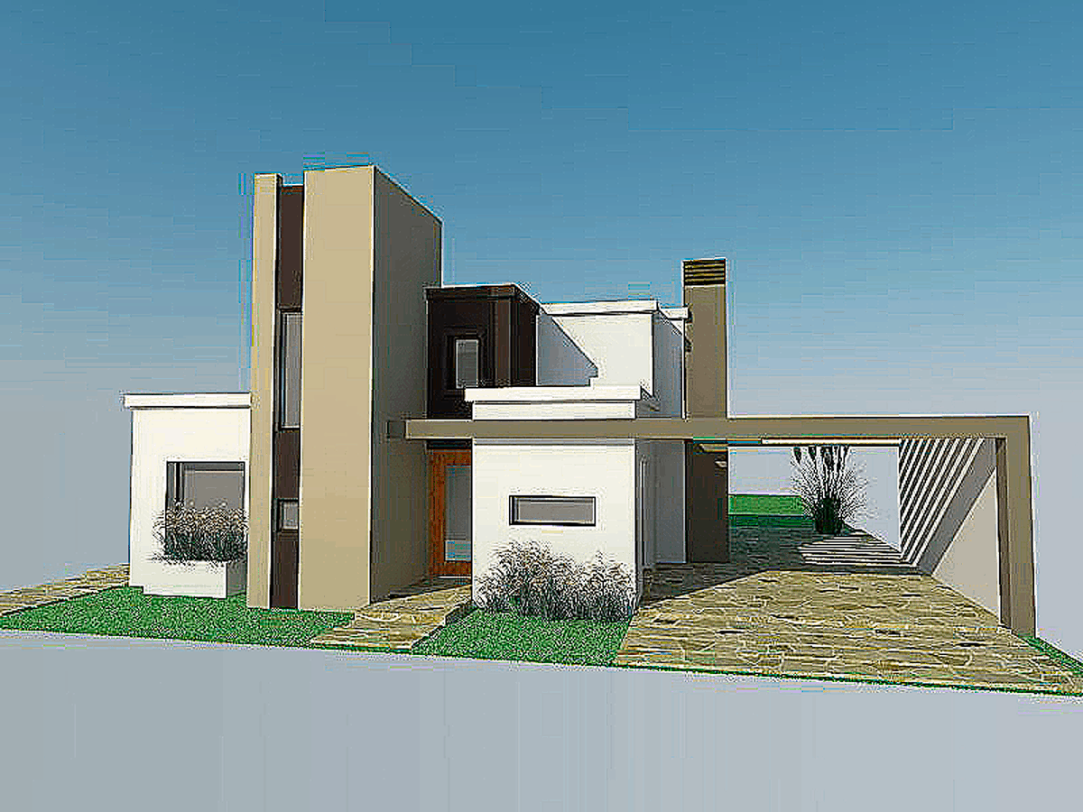 Espacio Doble Altura Living Comedor conectado a Jardín y a Cochera Doble con Churrasquera. Cocina, Toilet. Área nocturna: Dos dormitorios conectados a Baño y Antebaño.